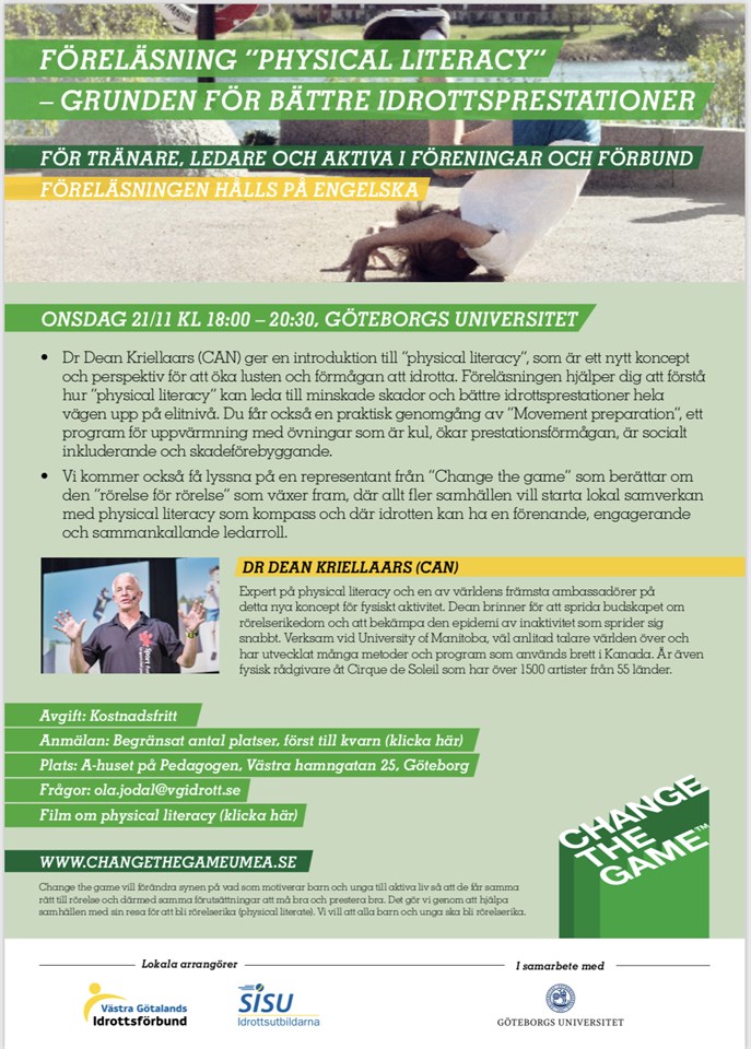 Hej på er! Ni har fått in inbjudan till en föreläsning på Pedagogen i Gbg onsdagen den 21/11 kl 18.00-20.30 (mail från styrelsen). Föreläsningen är på engelska och handlar om Physical Literacy som är ett helhetstänk kring ledarskap, fysisk aktivitet och om hur vi kan bli bättre på att behålla barn/ungdomar inom idrotten. Det är en unik möjlighet då Dean som håller i det bor i Kanada! Han är en inspirerande föreläsare och kommer även ge praktiska tips för träningar. Göteborgs fotbollsförbund har bokat upp 25 platser och är väldigt intresserade. Svenska fotbollsförbundet har redan haft Dean på besök. Riksidrottsförbundet har precis utformat nya tränarutbildningar med Physical Literacy som bas så detta är framtiden. Häng med redan nu, när vi får denna chansen!! Se länkar för mer info: https://youtu.be/8fVDAnrdf5w https://youtu.be/R8PIXqp3JpA Mvh Anders Öjersjö IF 13 nov 2018 0kommentarer