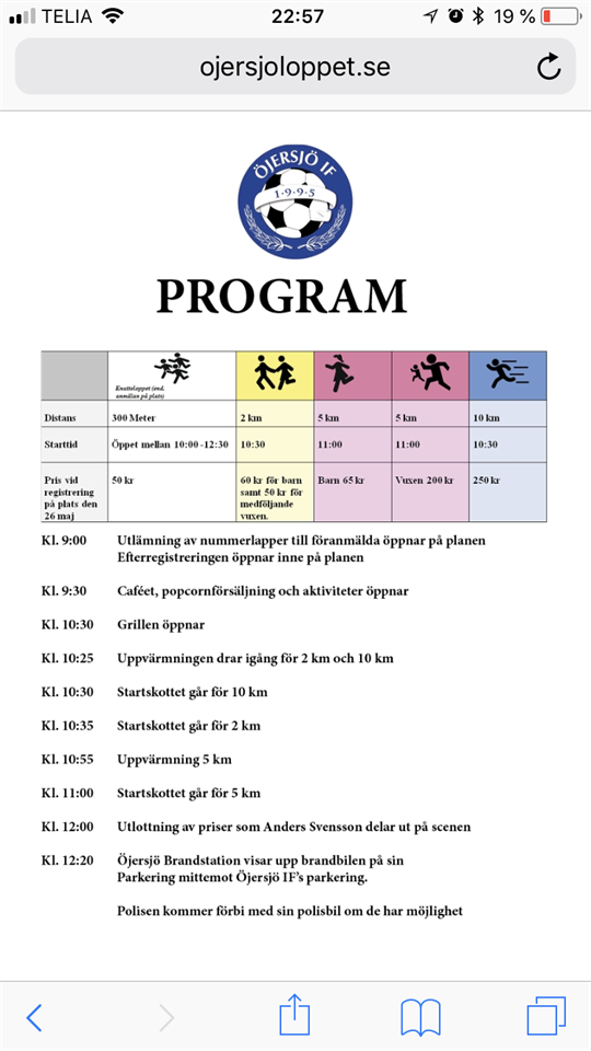Nästa helg är det Öjersjöloppet. Nyheter för i att era barn själva kan bestämma om de vill springa 2 eller 5 km. Det kommer finnas vuxna i spåret samt ledare som springer med barnen. In och anmäl er på ojersjoloppet.se I F-06 behöver vi funktionärer. Nu när vi inte längre arrangerar någon egen cup (Vi spelar 9-manna) lever vi på de andra lagen. Därför har styrelsen bestämt att det är på Öjersjöloppet som vi får göra vår föräldratjänstgöring. Troligen kommer ingen av oss ledare i F-06 springa loppet utan vi är också med som funktionärer. Passen det handlar om är parkeringsvakter, kioskbemanning, grill, lotter o.s.v. I praktiken avslutas alla pass 13:00. Vibehöver 12-15 föräldrar så svara på kallelsen så fort det bara går. //LInus, Samuel, Fredrik Junior - flickor 17 maj 2018 0kommentarer
